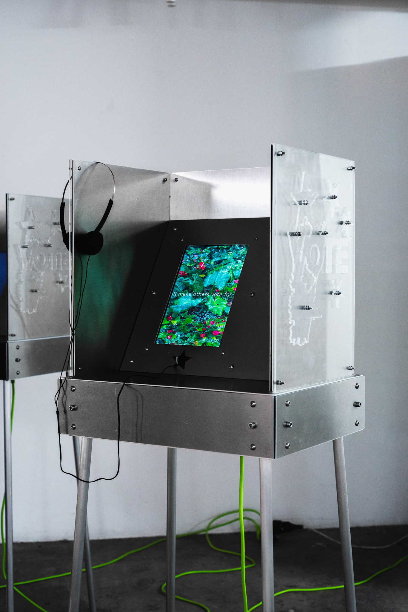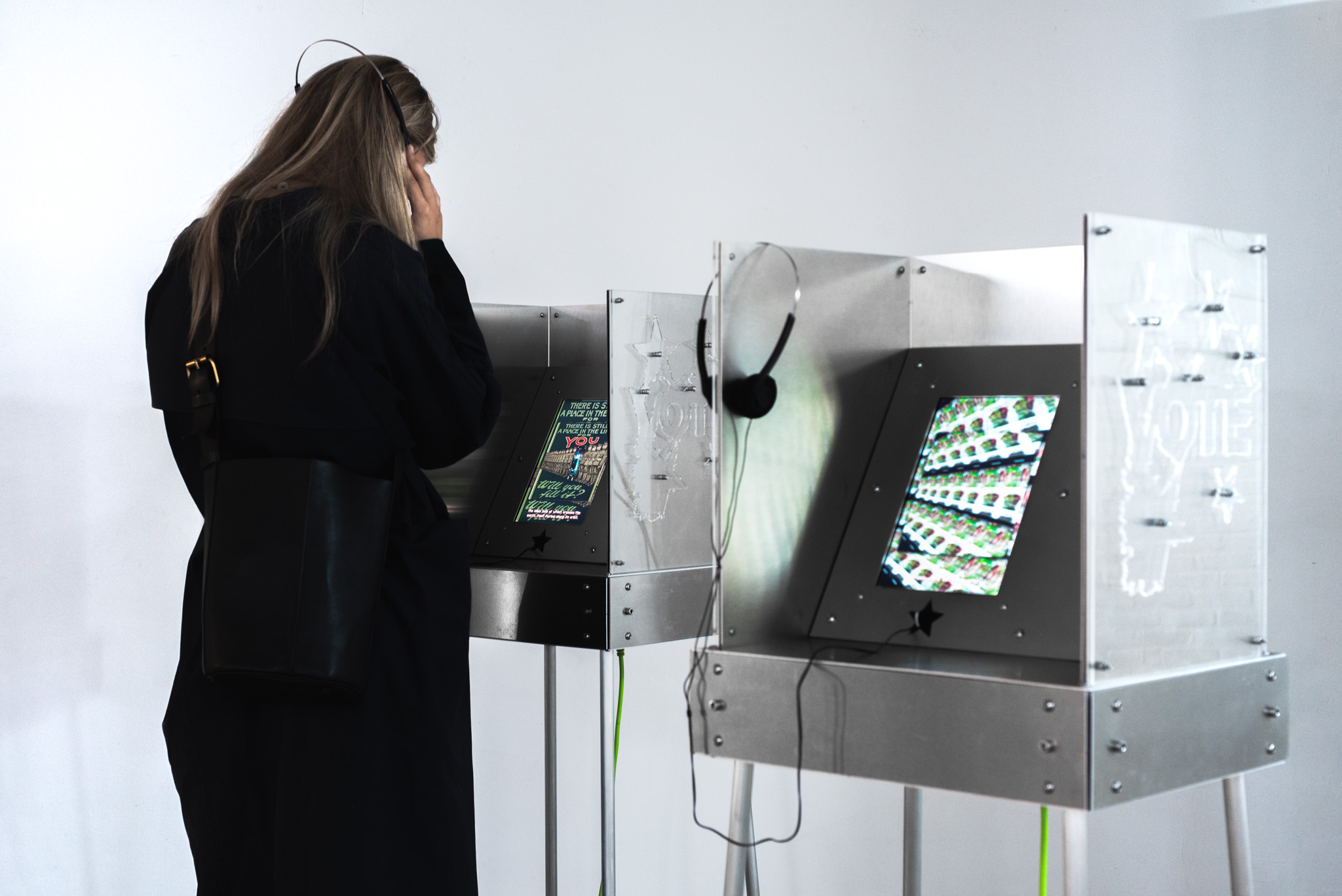 V.I.B.E explores the rise of “vibe culture” as a dominant mode of sense-making in the post-truth era, through a speculative electoral campaign and interactive installation. In a media landscape characterized by algorithmic bubbles and short-form video content, rational discourse is being threatened by ambiently spread propaganda—vibes. Critically engaging with the memetic strategies of contemporary far-right movements, the project investigates how hyper-online weaponized aesthetics normalize violence and advance authoritarianism through affectual manipulation.