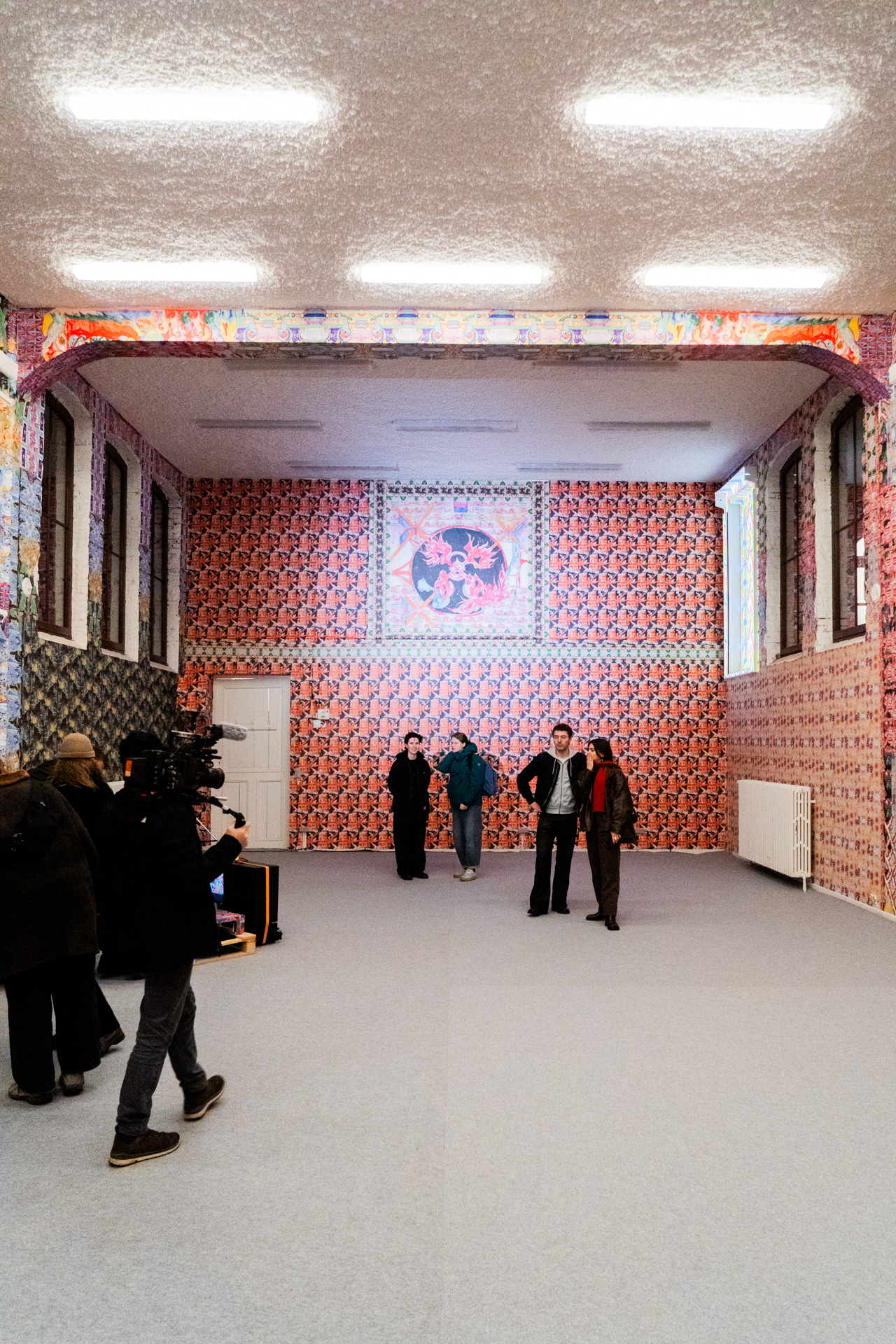 She used Stable Diffusion, an AI tool she trained herself, to generate Dancheong motifs. Many AI tools lack knowledge of non-Western art, but by maintaining an ongoing dialogue between human and machine, she produced truly unique images. These AI-generated works then served as the basis for watercolors, which she printed onto wallpaper, transforming the Hangar at BAC ART LAB into a striking visual environment.