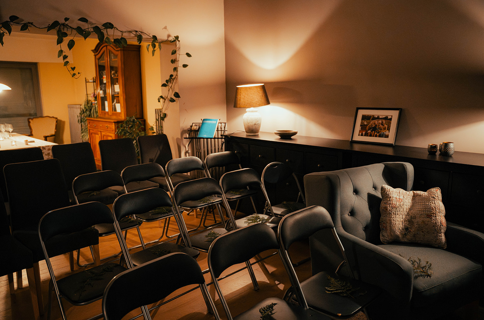 In de herfst breekt het onkruid binnen in een woning in de wijk. Daar ontstaat een levende installatie met klank, video en tekeningen. In een intieme huiskamerperformance creëren Line, Ditmar en Mei-Lan een symbiose tussen onkruid en kamerplant. Door te ruiken, te voelen en te luisteren, nodigen ze uit om kunst en natuur anders te ervaren — voorbij het zichtbare, met het hele lichaam.
